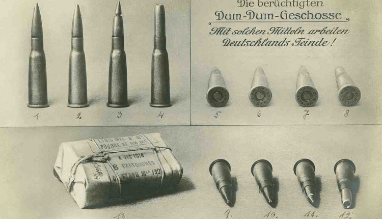 „Mit solchen Mitteln arbeiten Deutschlands Feinde.“ Fein säuberlich aufgereiht liegen Sie nun dort. Nummeriert von 1 bis 13 und aus jeder erdenklichen Perspektive abgelichtet zeugen sie vom Schrecken, der sich im Anbetracht des Krieges breitmacht. In der indischen Stadt Dum-Dum entwickelt, erhofften sich britische Militärs im ersten Weltkrieg eine noch tödlichere Wirkung ihrer Dum-Dum-Geschosse. Das war für die deutsche Kriegspropaganda jener Zeit ein gefundenes Fressen. Ein Thema, mit dem sich nach zwei Jahren Krieg die Massen mobilisieren ließen, oder? Eine Tatsache, mit der sich der deutsche Angriff auf Belgien legitimieren ließe? Und nicht ganz so offensichtlich wie die Darstellung der Russen als sittenlose und mordende Barbaren.